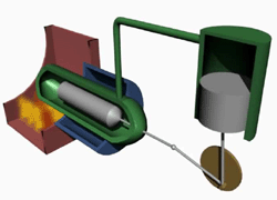 The Diagran on the left is an sterling engine which uses heat trasfere to move a piston.