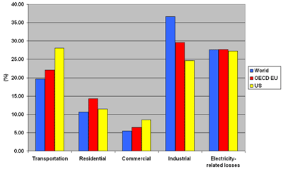 The graph on the right represents energy use by industry and loss of the produced energy. Just like industry wastes energy in the production of goods, renewable energy systems loose energy in several ways. Thermal loss, resistance and inverter inefficiencies are just some examples. Renewable energy systems need to be planed carefully to avoid as much loss as possible.
